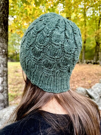 This worsted-weight, textured cable hat with both written and charted directions has built in rest rows. Available in one size. Also, check out the sister design—Killadoon Hat.